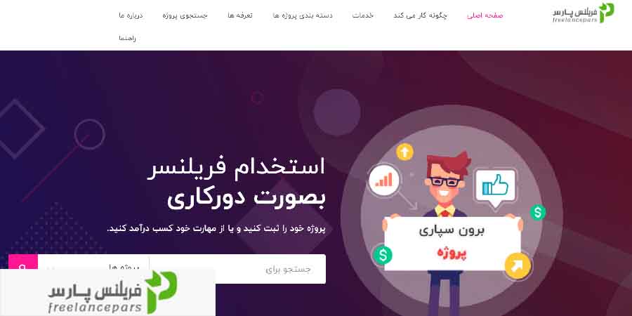 فریلنس پارس ، یک سایت فریلنسینگ و دورکاری برای سفارش و انجام پروژه های اینترنتی در ایران است. انواع پروژه ها و نیازهای کاری و شغلی در زمینه های سفارش تایپ، تولید محتوا، ترجمه زبان های مختلف، طراحی گرافیک، عکاسی، ادیت عکس و فیلم، برنامه نویسی، طراحی سایت، دستیار مجازی، آهنگسازی و ویرایش صوت، معماری، نقشه کشی، مدلسازی و… در این سایت قابل تعریف و اجراست.کارفرمایان، نیازها یا پروژه های خود را در این سایت به صورت رایگان مطرح کرده و متخصصان یا فریلنسرهای سایت، با ارائه پیشنهاد همکاری، پروژه‌ها را انجام داده و تحویل می‌دهند. کارفرما، پس از ثبت پروژه و توافق نهایی با فریلنسر بر سر هزینه و روش انجام کار، هزینه پروژه را واریز کرده و سایت، مبلغ را نزد خود نگه می‌دارد. پس از انجام کار و تحویل به کارفرما، تایید و رضایت او، مبلغ برای فریلنسر آزاد می‌شود. با این قابلیت که در اصطلاح “پرداخت امن” نامیده می‌شود، هم کارفرما از انجام پروژه خود اطمینان دارد و هم فریلنسر از واریزی مبلغ توسط کارفرما.